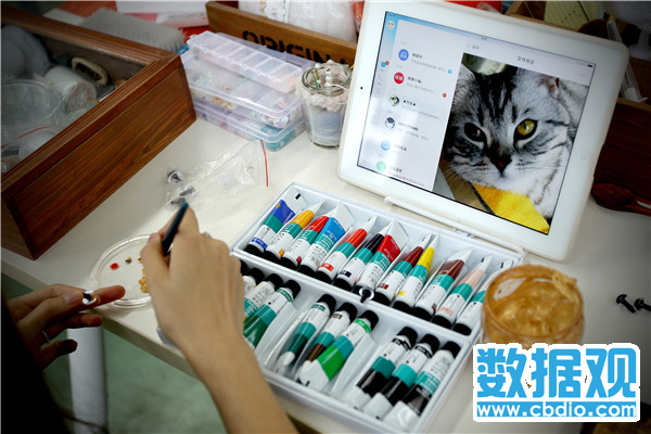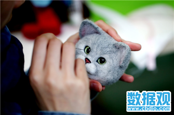 荳小nia的销售模式主要通过网络,她戳出来的羊毛毡跟真的一样,网店的好评让她客源不断。图为荳小nia通过买家发来的宠物照片制作羊毛毡。