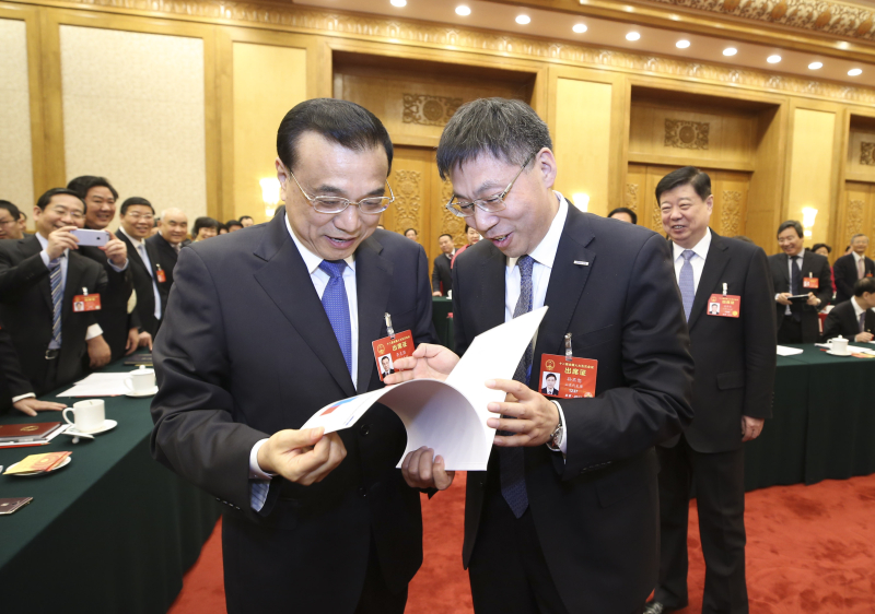 李克强总理6日上午来到他所在的十二届全国人大五次会议山东代表团,参加审议政府工作报告。代表们称赞总理所作的报告充分体现了民心民意、求真务实。报告中“干货很多”、“很接地气”。总理偶尔插话询问,不时记录下代表的意见建议。