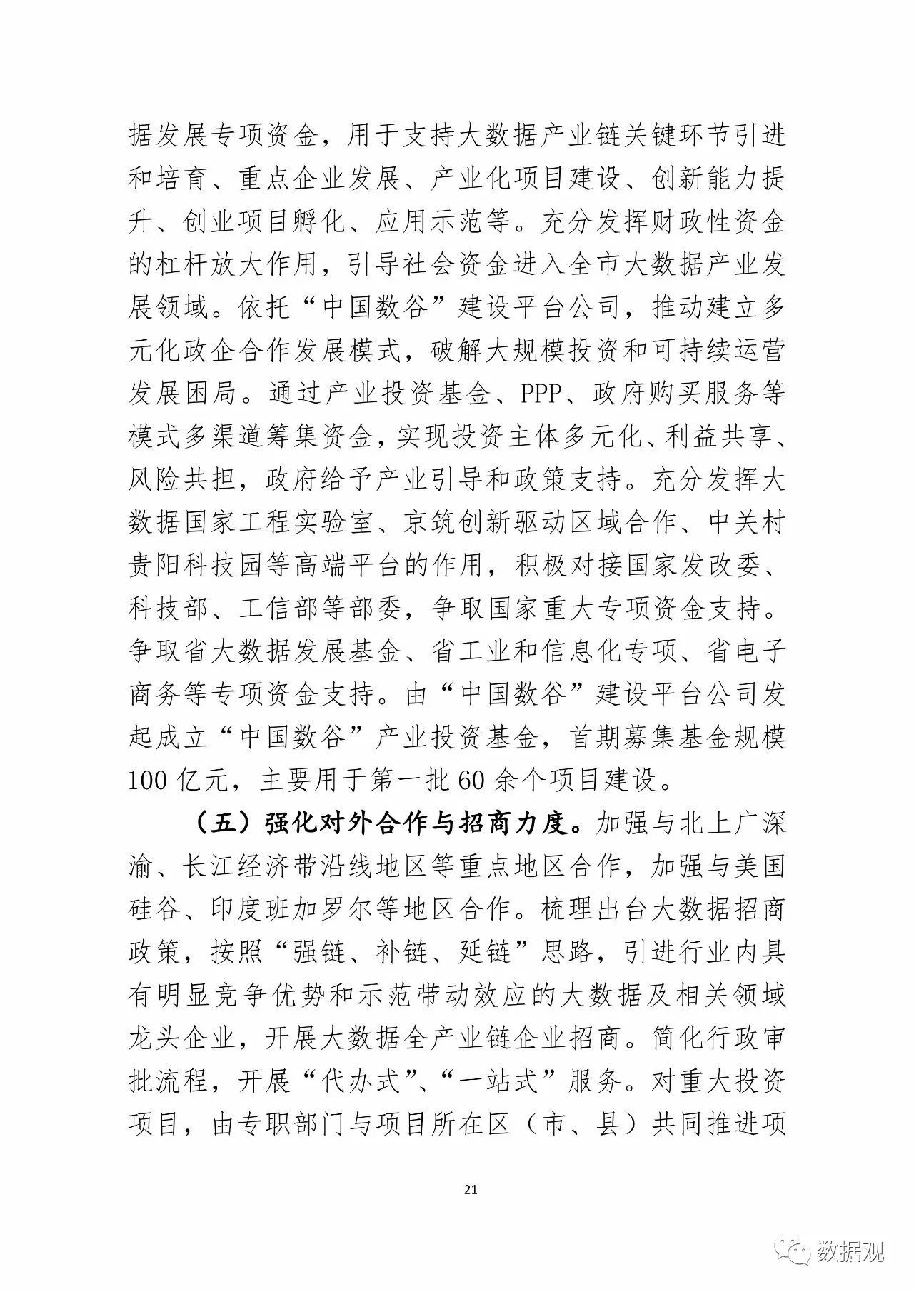 为加强体制机制创新和组织实施,我市将组建“中国数谷”建设运营与投融资综合平台公司和大数据产业联盟,构建应用与产业联动机制;创新项目资金筹措模式,市级财政设立大数据发展专项资金,充分发挥财政性资金的杠杆放大作用,引导社会资金进入全市大数据产业发展领域;由“中国数谷”建设平台公司发起成立“中国数谷”产业投资基金,首期募集基金规模100亿元。(记者 瞿六琴)