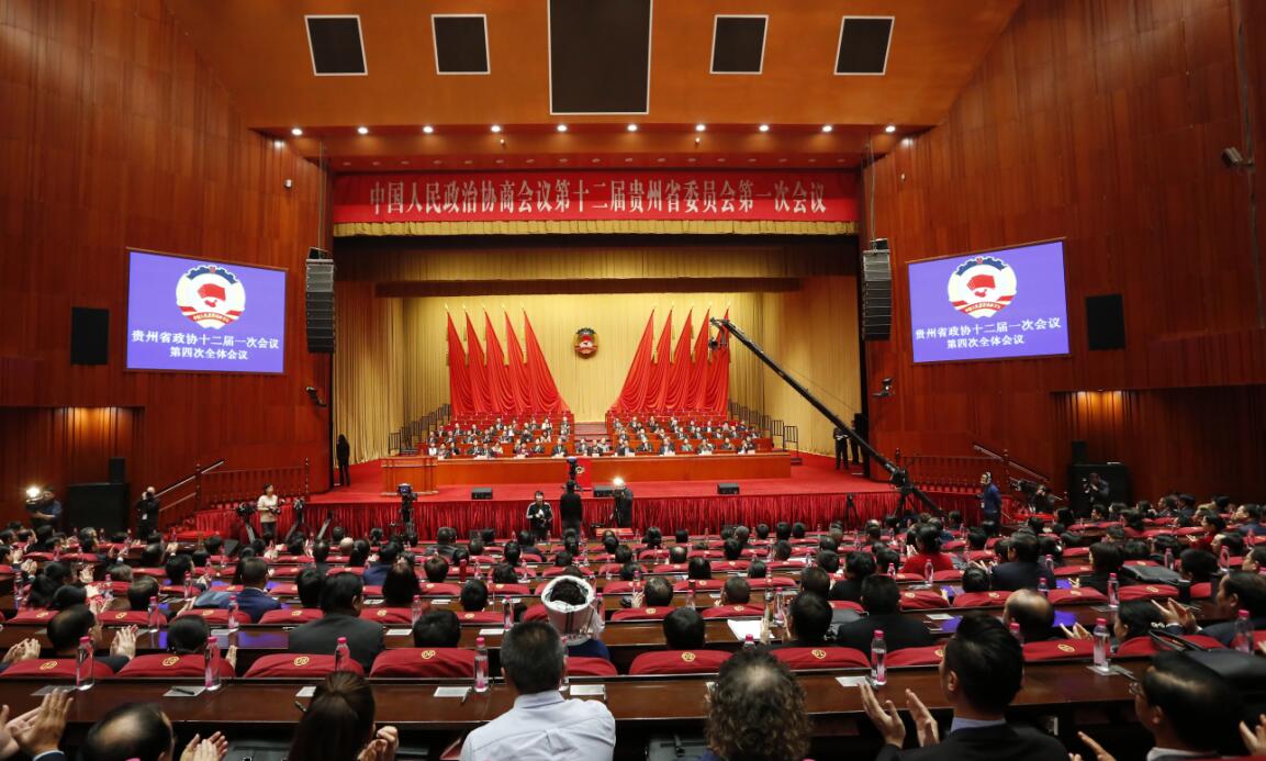 1月29日,政协第十二届贵州省委员会第一次会议举行第四次全体会议。图为会议会场。李森 摄
