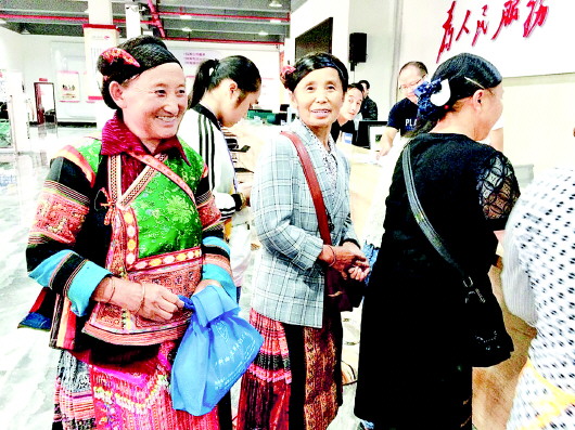 搬迁群众在阿妹戚托新市民服务中心排队咨询和办理事务。
