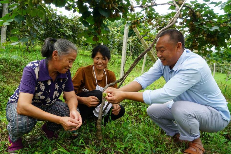 两河口镇黎明村,驻村干部给村民讲解疏果技术