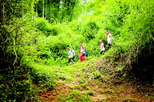 搬迁前孩子上学走山道。