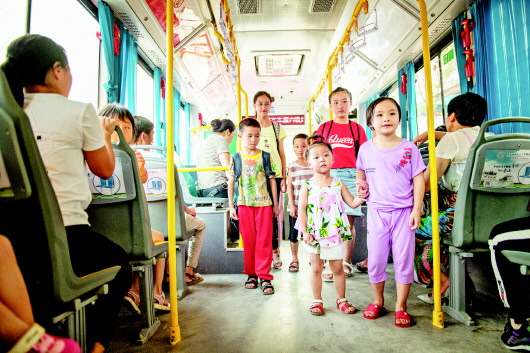 搬迁后孩子上学乘坐公交车。