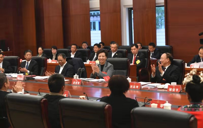 陶长海、傅信平、陈昌旭、陈少荣、冷朝刚、杨云、邓正明、张浩然等代表先后发言,讨论气氛热烈。大家表示完全赞同政府工作报告,一致认为,报告总结成绩实事求是、振奋人心,部署工作思路清晰、措施有力,完全符合习近平总书记对贵州工作的系列重要指示精神,完全符合中央和省委经济工作会议精神,是一个有底气、接地气、鼓士气的好报告。代表们分别围绕脱贫攻坚、农村产业革命、十大千亿级工业产业发展、城镇化、基本医疗保障、乡村人居环境整治、教育扶贫、易地扶贫搬迁等谈了认识体会、提出意见建议。谌贻琴认真聆听、仔细记录,不时与代表们互动交流,她表示将认真研究吸纳代表们的真知灼见,并体现到下步工作中去。