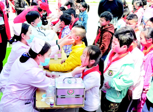 一支医疗扶贫队在黔西县铁石乡安乐小学开展义诊检查。熊军万 摄(贵景网发)