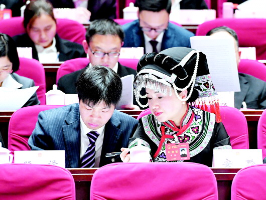 代表们在省人大十三届三次会议分组讨论交流。(记者 贾智 摄)