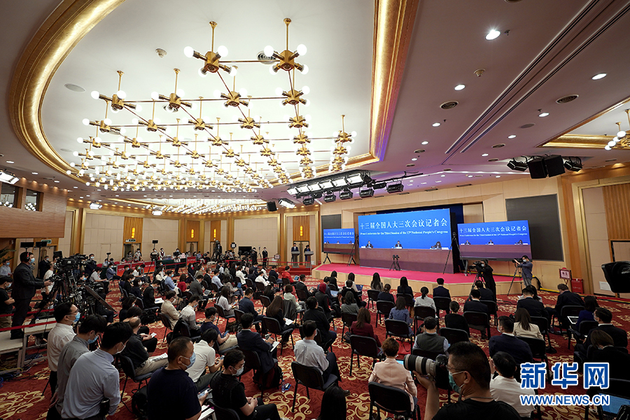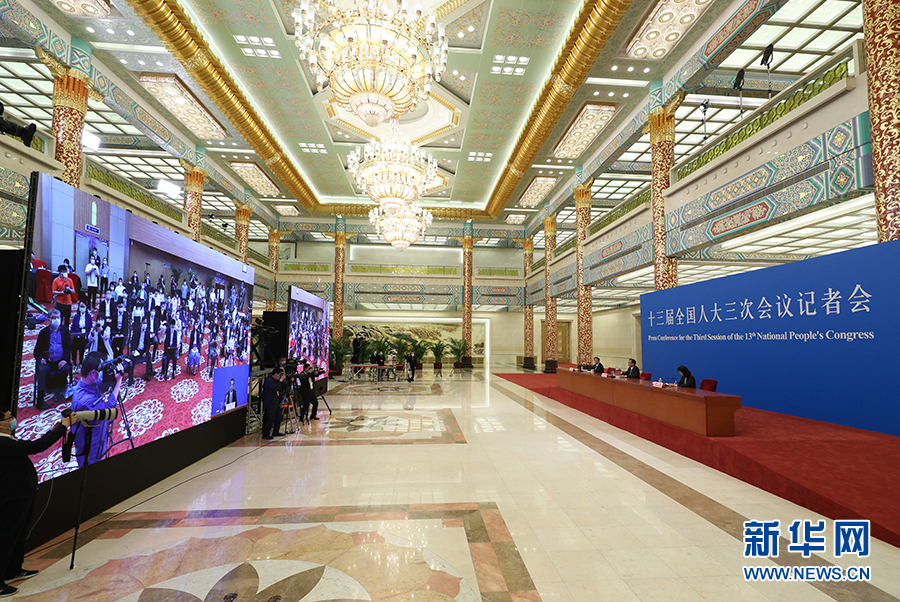 5月28日,国务院总理李克强在北京人民大会堂出席记者会并回答中外记者提问。这是记者在梅地亚中心多功能厅采访。 新华社记者 金良快 摄