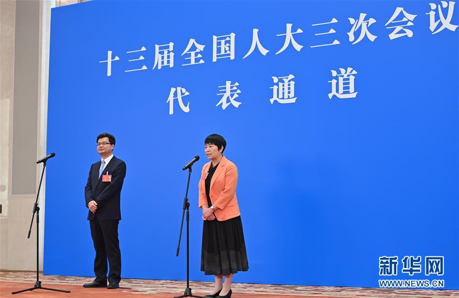 5月22日,第十三届全国人民代表大会第三次会议举行首场“代表通道”采访活动。这是全国人大代表通过网络视频方式接受采访。 新华社记者 刘金海 摄