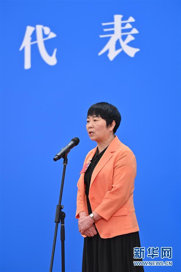 5月22日,第十三届全国人民代表大会第三次会议举行首场“代表通道”采访活动。这是全国人大代表朱国萍通过网络视频方式接受采访。 新华社记者 刘金海 摄