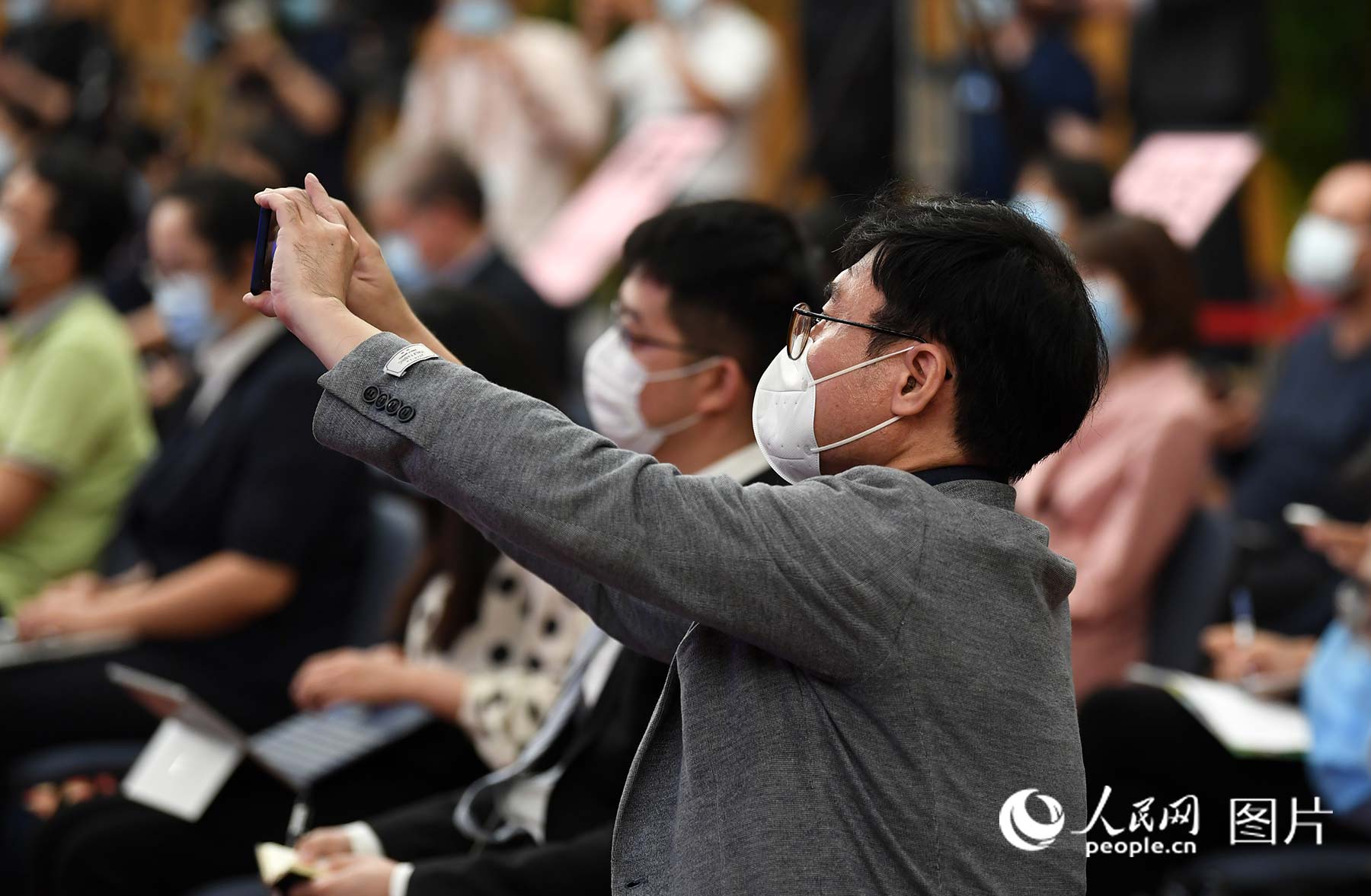记者用手机记录发布会现场。人民网记者 翁奇羽 摄