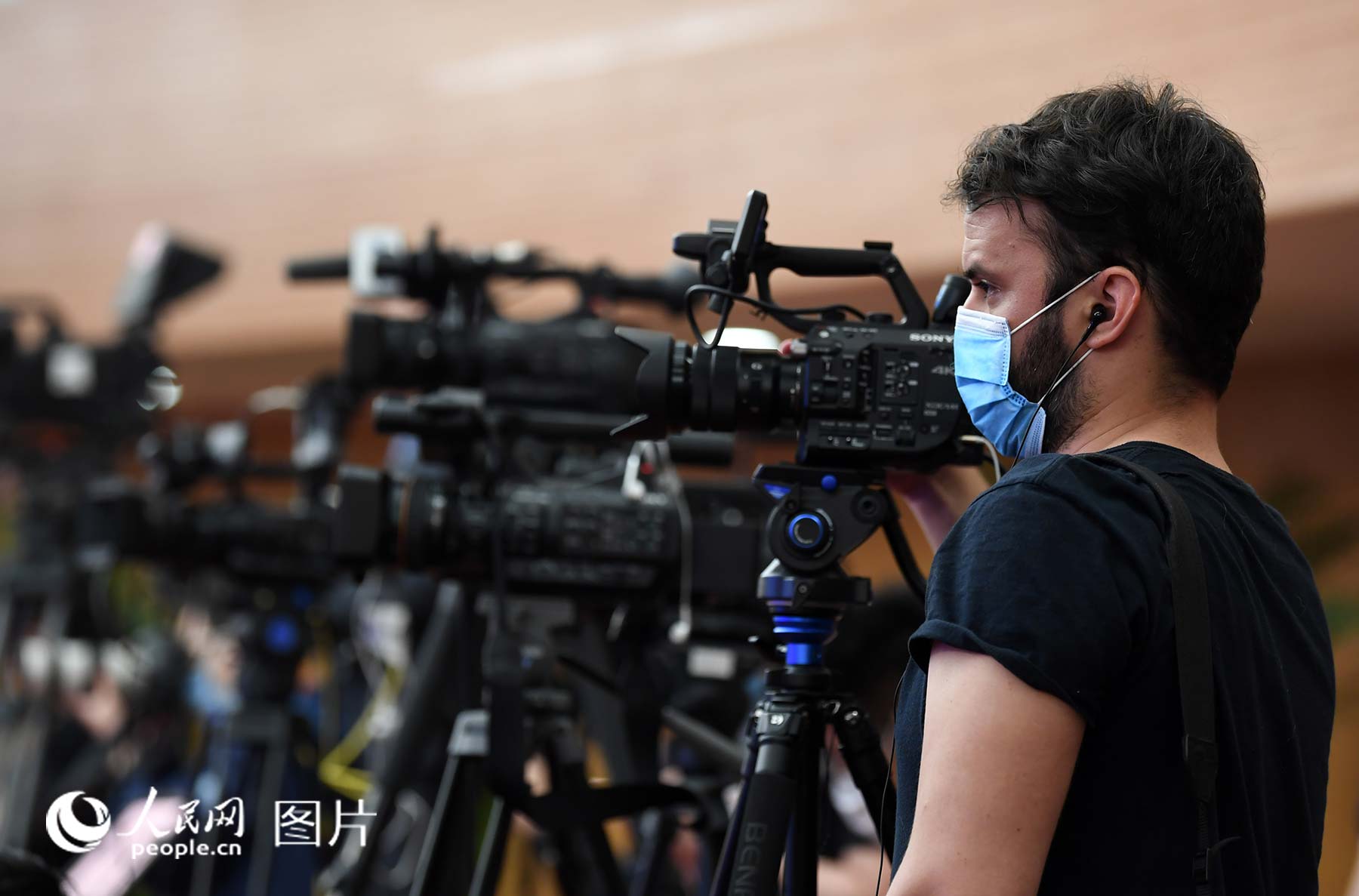 外国记者在现场采访。人民网记者 翁奇羽 摄