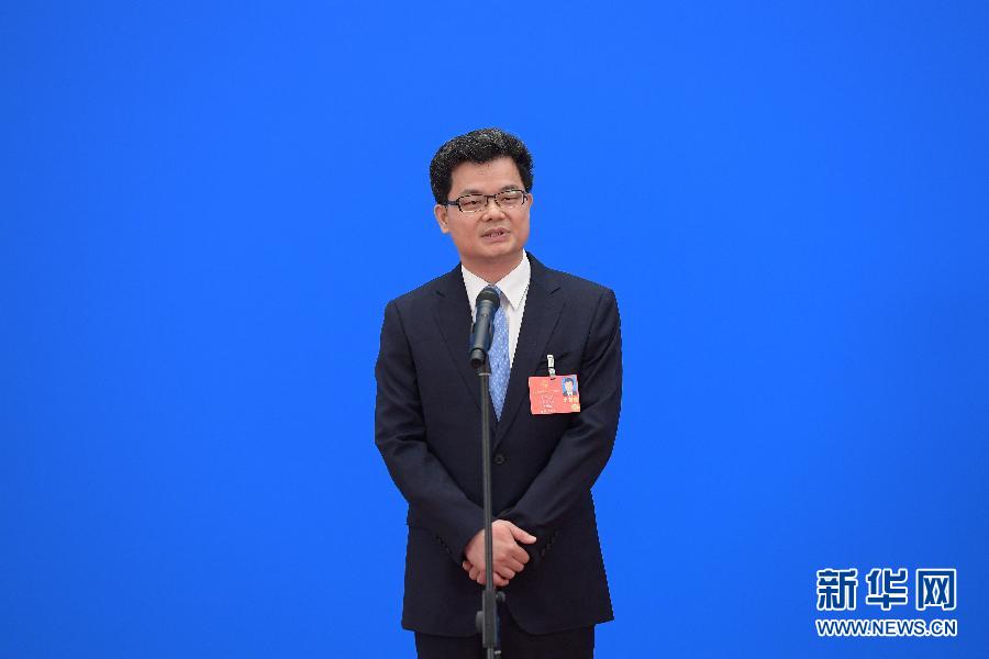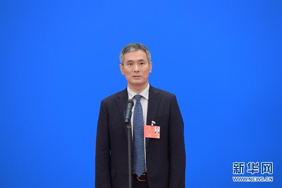 这是全国人大代表肖胜方通过网络视频方式接受采访。 新华社记者 李贺 摄