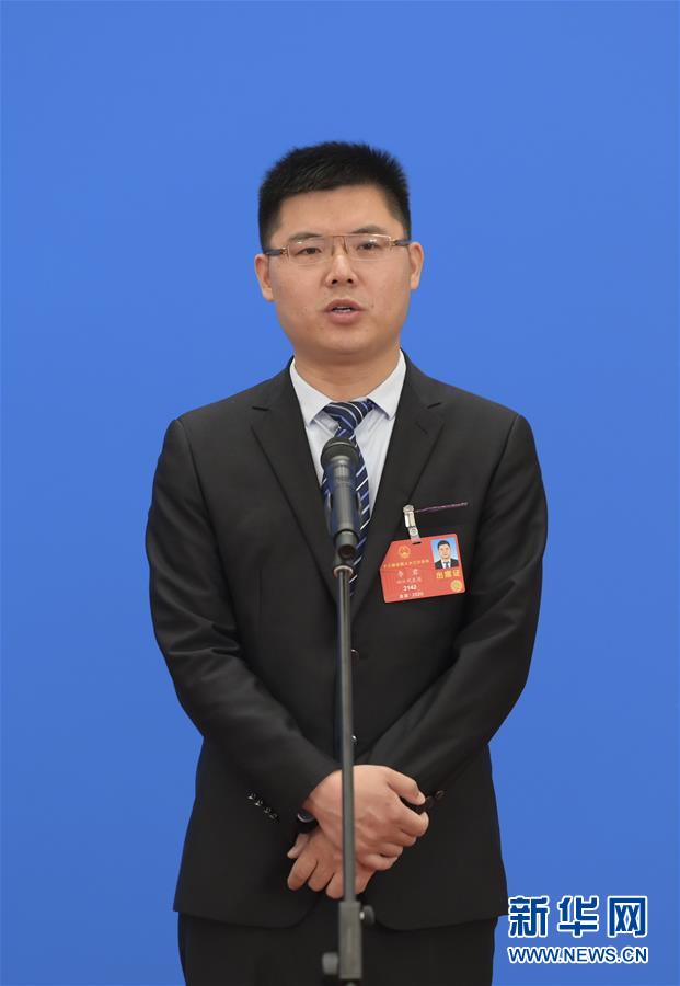 5月25日,第十三届全国人民代表大会第三次会议举行第二场“代表通道”采访活动。这是全国人大代表李君通过网络视频方式接受采访。 新华社记者 李贺 摄