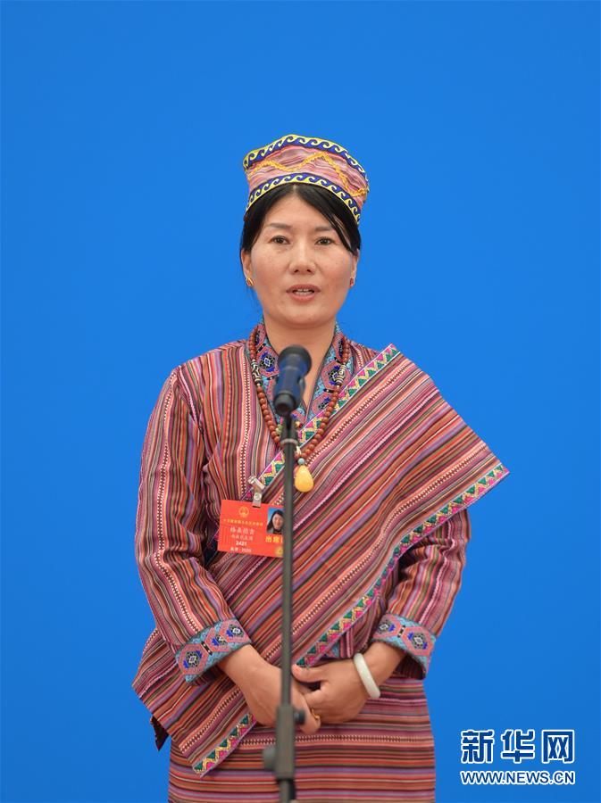 5月25日,第十三届全国人民代表大会第三次会议举行第二场“代表通道”采访活动。这是全国人大代表格桑德吉通过网络视频方式接受采访。 新华社记者 李贺 摄