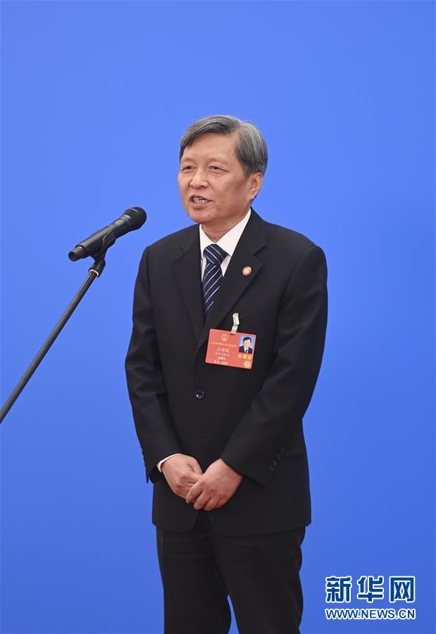 5月25日,第十三届全国人民代表大会第三次会议举行第二场“代表通道”采访活动。这是全国人大代表王树国通过网络视频方式接受采访。 新华社记者 陈晔华 摄