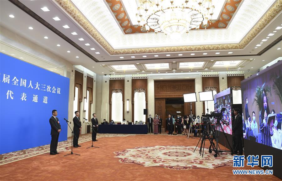 5月25日,第十三届全国人民代表大会第三次会议举行第二场“代表通道”采访活动。这是全国人大代表通过网络视频方式接受采访。 新华社记者 金良快 摄