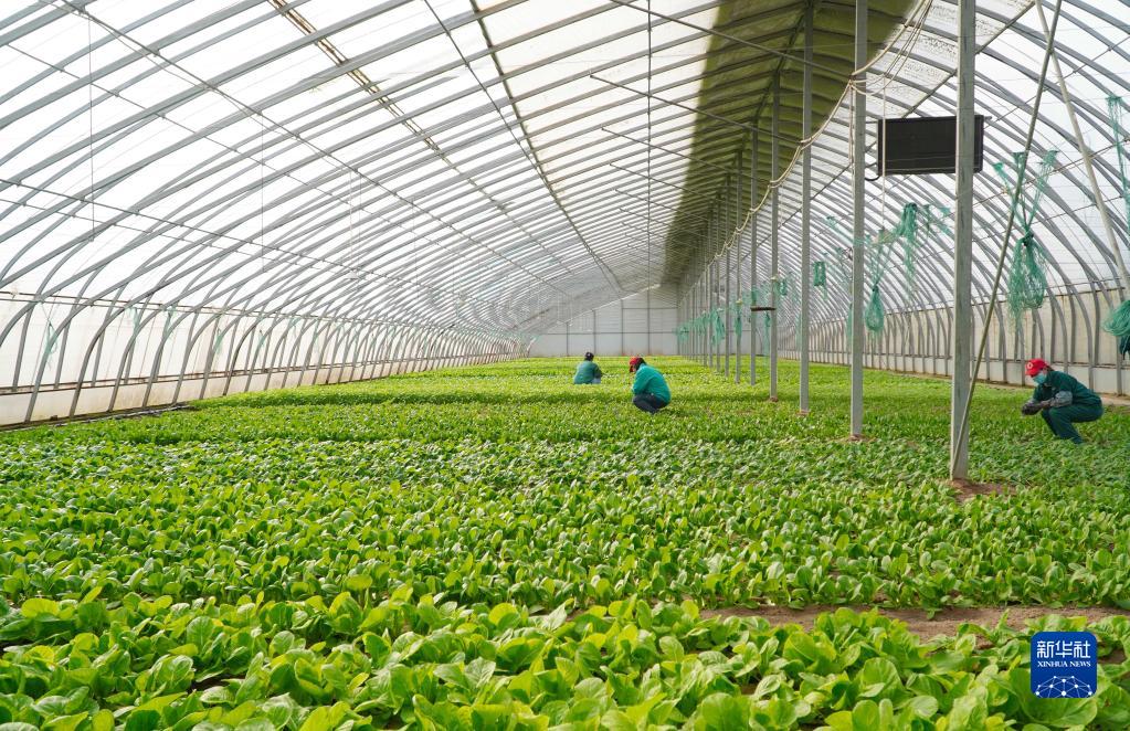 2月20日,在山东省曹县五里墩村,村民在生态农场里工作。新华社记者 徐速绘 摄