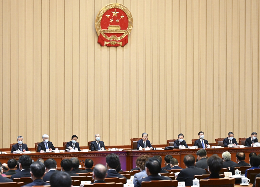 3月9日上午,十四届全国人大一次会议主席团在北京人民大会堂举行第三次会议。主席团常务主席赵乐际主持会议。新华社记者 谢环驰 摄