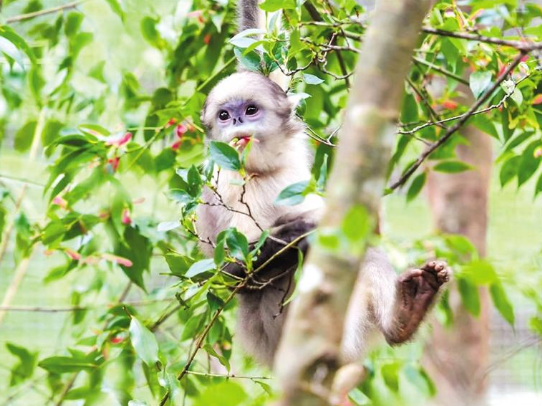 由于黔金丝猴栖息在犹如孤岛一般的梵净山中,生存范围狭窄,加之数量稀少,又被科学家称为“世界独生子”。