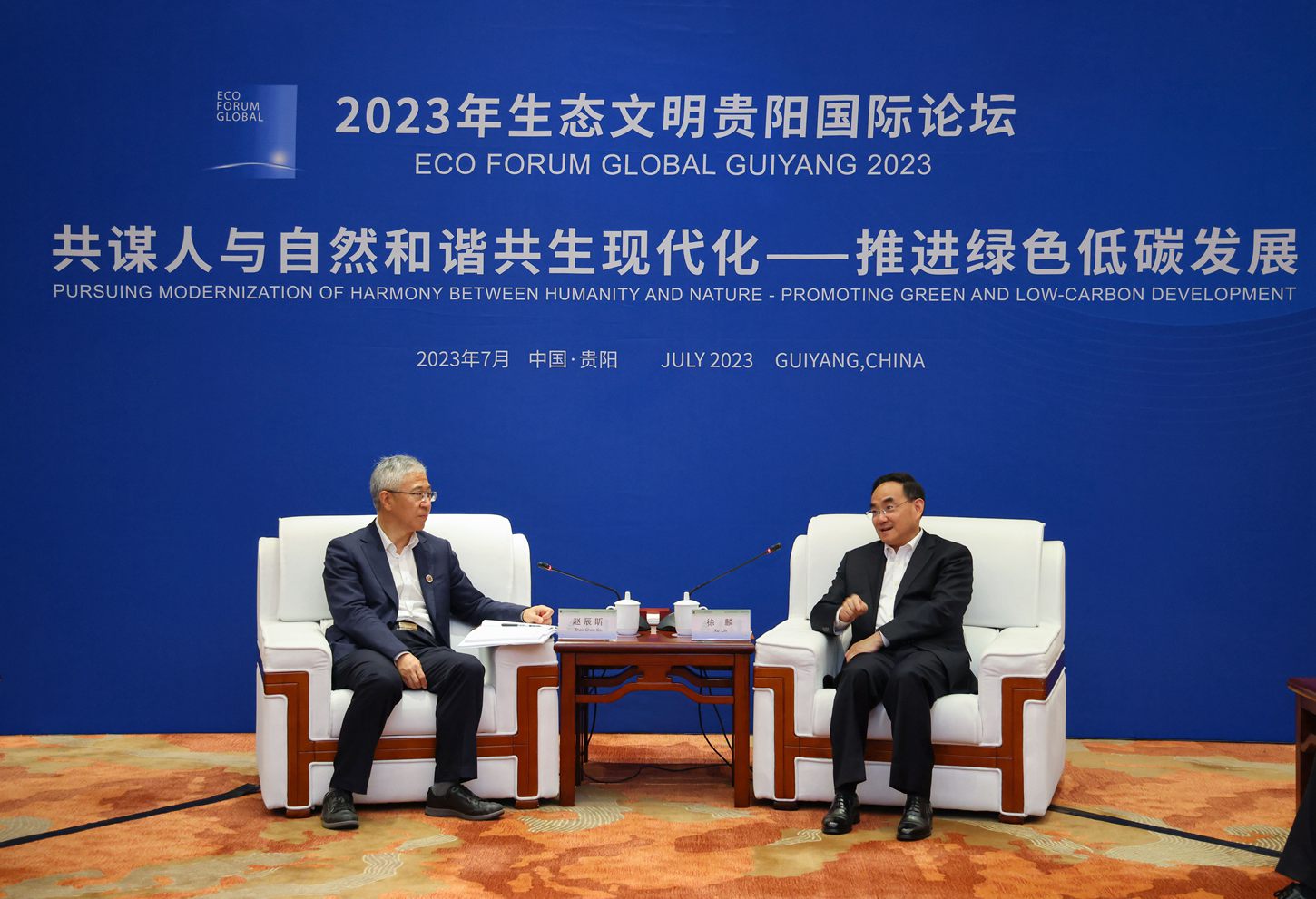 7月7日,省委书记、省人大常委会主任徐麟在贵阳会见来黔出席2023年生态文明贵阳国际论坛的国家发展改革委党组成员、副主任赵辰昕一行。省委常委、常务副省长吴强,省委常委、省委秘书长陈少波参加。