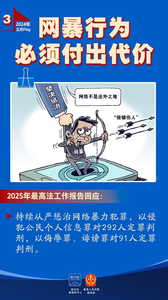 提请十四届全国人大三次会议审议的最高人民法院工作报告中,严惩暴力犯罪、打击电信网络诈骗、强化未成年人保护等内容令人印象深刻。报告记录了过去一年中国的法治足迹,让公平正义更加可感可知。