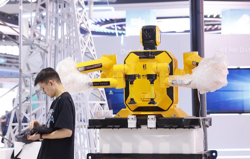 在专属的“空中球场”,无人机也能踢足球,选手们全神贯注操控无人机,向对方球门发起冲击,围观者大喊“加油”,现场气氛犹如真人比赛般热烈;云深处科技展台被围堵得水泄不通,三台形态各异的机器人吸引众多观众拿着手机抢拍,贵阳市民金泽忍不住与其握手,觉得新奇又好玩;首次参展的特斯拉展台人流如织,观众争相体验赛博越野旅行车、Model 3、Model Y等创新产品,感受智能辅助驾驶技术的科技魅力;一副看似普通的黑框眼镜也成了“爆款中的爆款”,当实时翻译、演讲提词、拍照导航等功能出现在视野中,“00后”观众表示“难以割舍”,连呼“买买买”……回过神来,观众李青道出了本届数博会专业展的显著变化:AI大模型正在加速进化,赋能千行百业,具身智能在终端应用正在提速,算力底座继续夯实。