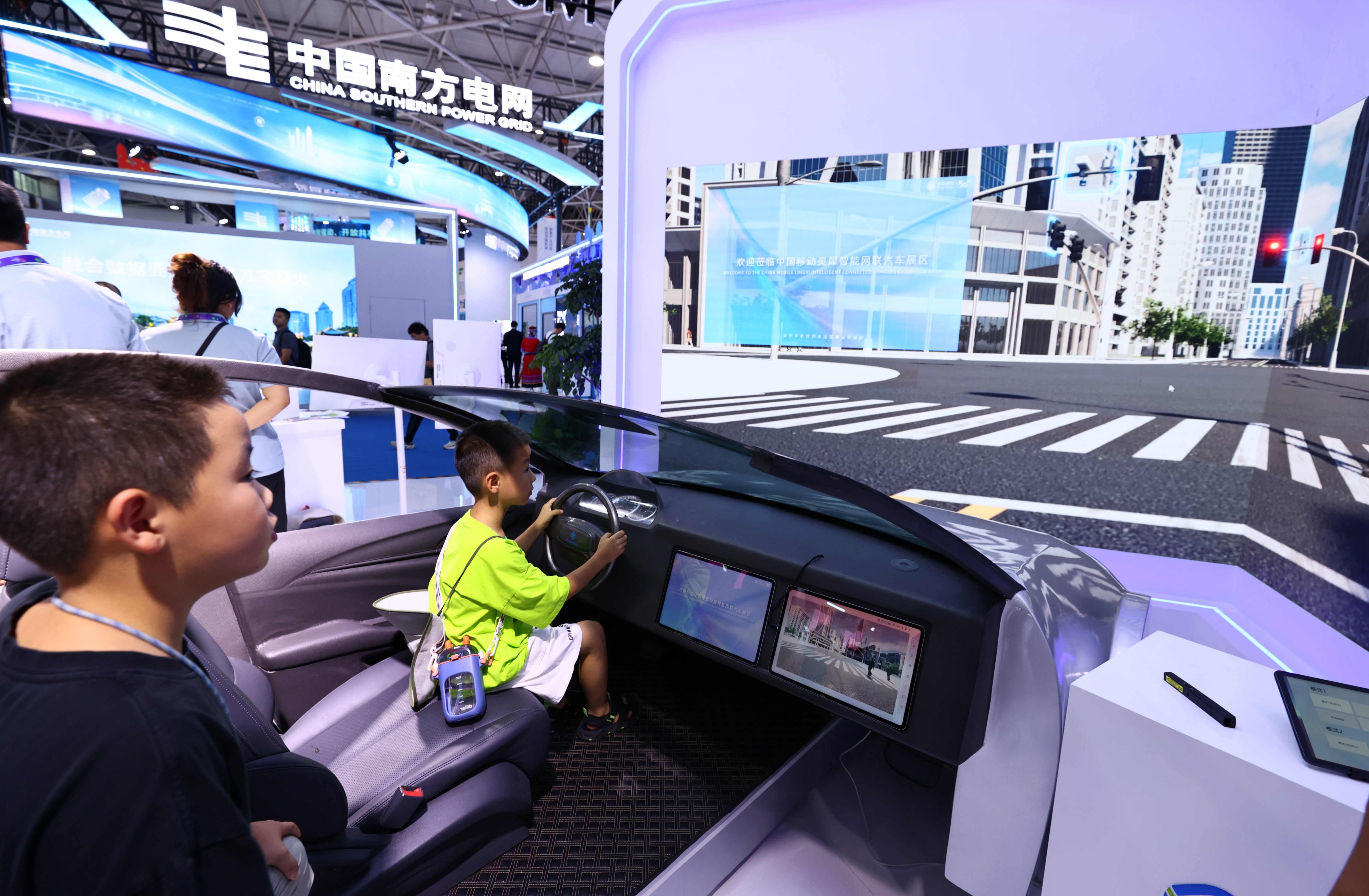 小朋友体验灵犀智能网联汽车驾驶。贵州日报天眼新闻记者 贾智/摄
