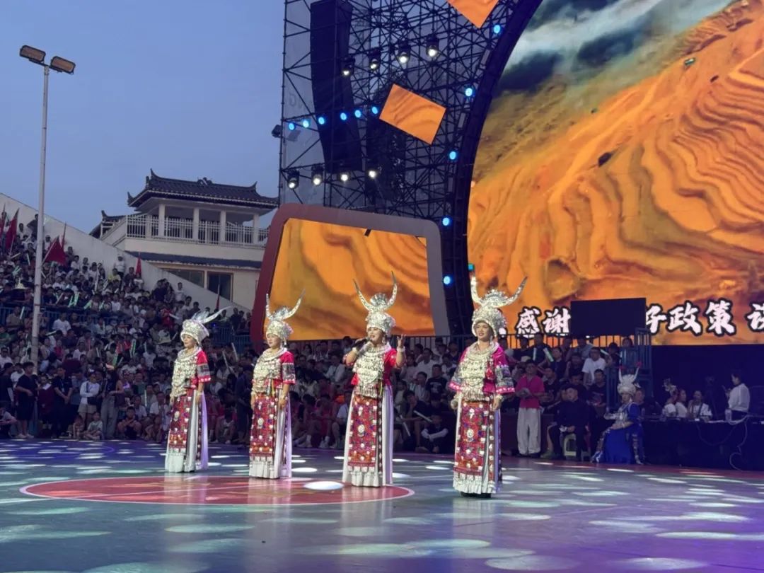 当天下午,三四名争夺赛率先打响,双方球员你追我赶,奋力奔跑,精彩的对抗引得现场人声鼎沸。伴随着夜幕降临,“村BA”深山音乐会接力登场。万人KTV瞬间点燃全场热情,紧接着《云上苗音·心之舞》《想我你就到贵州来》《苗乡侗寨》等特色节目轮番上演,阿幼朵、蝶当久、杨一方等本土歌手联袂献艺,为大众献上精彩的民族文化视听盛宴。