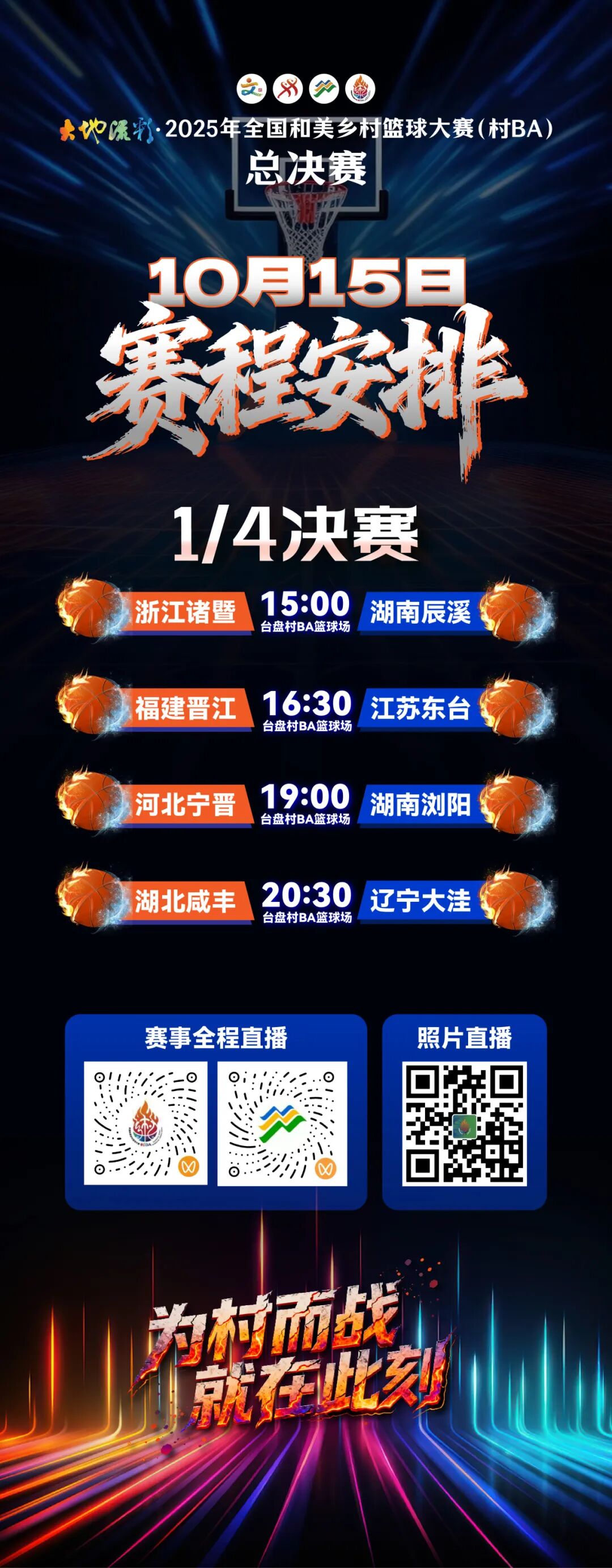 大地流彩·2025年全国和美乡村篮球大赛(村BA)总决赛八强阵容已出炉10月15日1/4决赛【赛程安排】公布