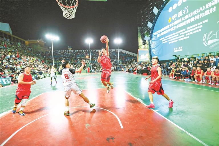 4月13日,大地流彩·2025年全国和美乡村篮球大赛(“村BA”)启动仪式在黔东南州台江县台盘村举行。启动仪式在贵州省非物质文化遗产代表性项目“思州战鼓”的激昂鼓声中拉开帷幕,现场超过两万名观众注视下,富有民族特色的歌舞与绚丽的民族服饰秀轮番登场,为大家奉献了一场精彩的乡村篮球文化盛宴。当晚,“村BA”揭幕战由雷山县望丰乡代表队和黎平县尚重镇代表队打响,为观众奉献了一场精彩的比赛。