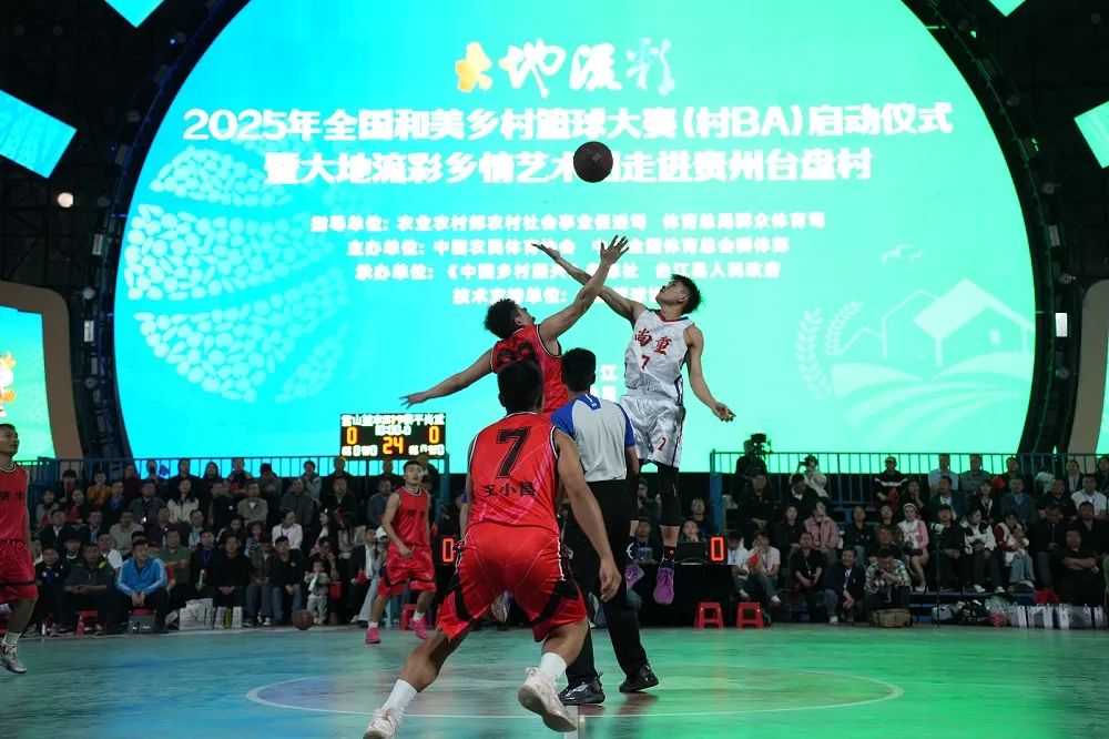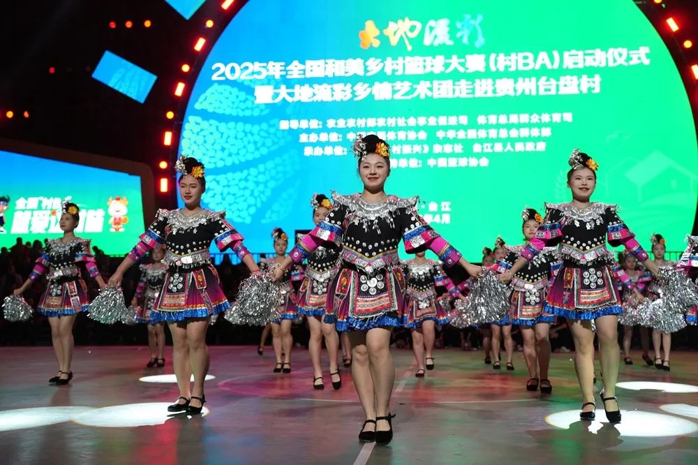 4月13日,大地流彩·2025年全国和美乡村篮球大赛(村BA)启动仪式暨大地流彩乡情艺术团走进台盘村活动在贵州省黔东南州台江县台盘村举行。