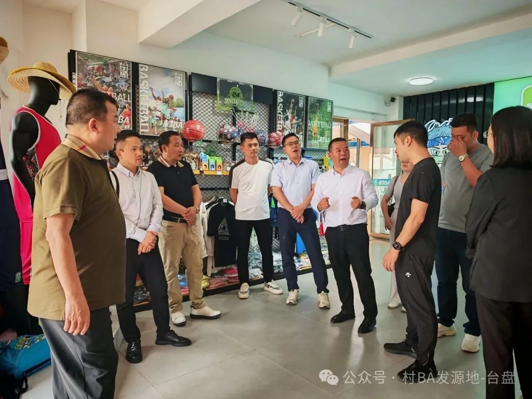 调研中,木乐镇一行参观了“村BA”线下体验店,详细了解“村BA”联名运动服饰研发情况;到“村BA”球场,了解“村BA”赛事的起源、发展历程、赛事规模、品牌价值以及周边产业带动效应等多方面情况;还参观了台盘1936一条街,了解文旅产业融合发展情况。
