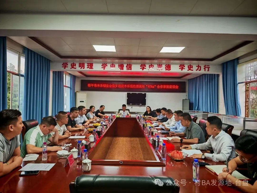 5月16日,桂平市木乐镇党委书记刘勇义带领木乐商会服装企业代表、木乐篮协代表一行到台盘“村BA”调研,并召开木乐运动服装与“村BA”合作事宜座谈会,县委常委、县人民政府副县长王进红,台江经济开发区管委会副主任、台盘乡党委书记龙维平陪同调研。