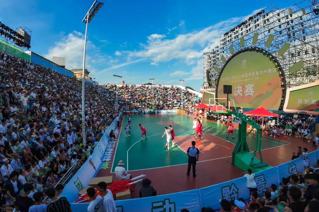 150公里外的台江县台盘村“村BA球场里,来自威宁阳光高级中学和威宁产投集团的两支球队,正用最激烈的对抗,争夺“村BA球王争霸赛贵州赛区的桂冠,让涌进现场的3万球迷观众腺素飙升。