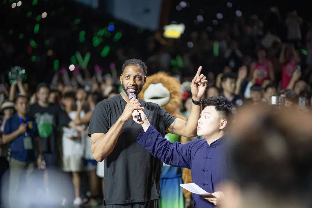 8月9日,NBA名宿麦迪互动“村BA”球场。杨晓波 摄