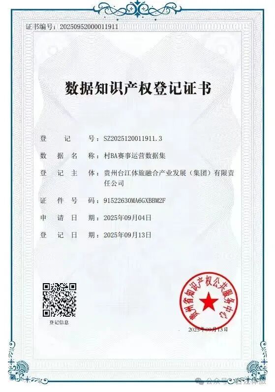 2023年10月,“贵州省台江县塑造‘村BA’品牌,推动乡村产业发展”案例入选国家知识产权强国建设典型案例,成为贵州首个获此殊荣的项目。如今,数据知识产权的成功登记,更是在数字经济浪潮中实现了一次重要跨越。