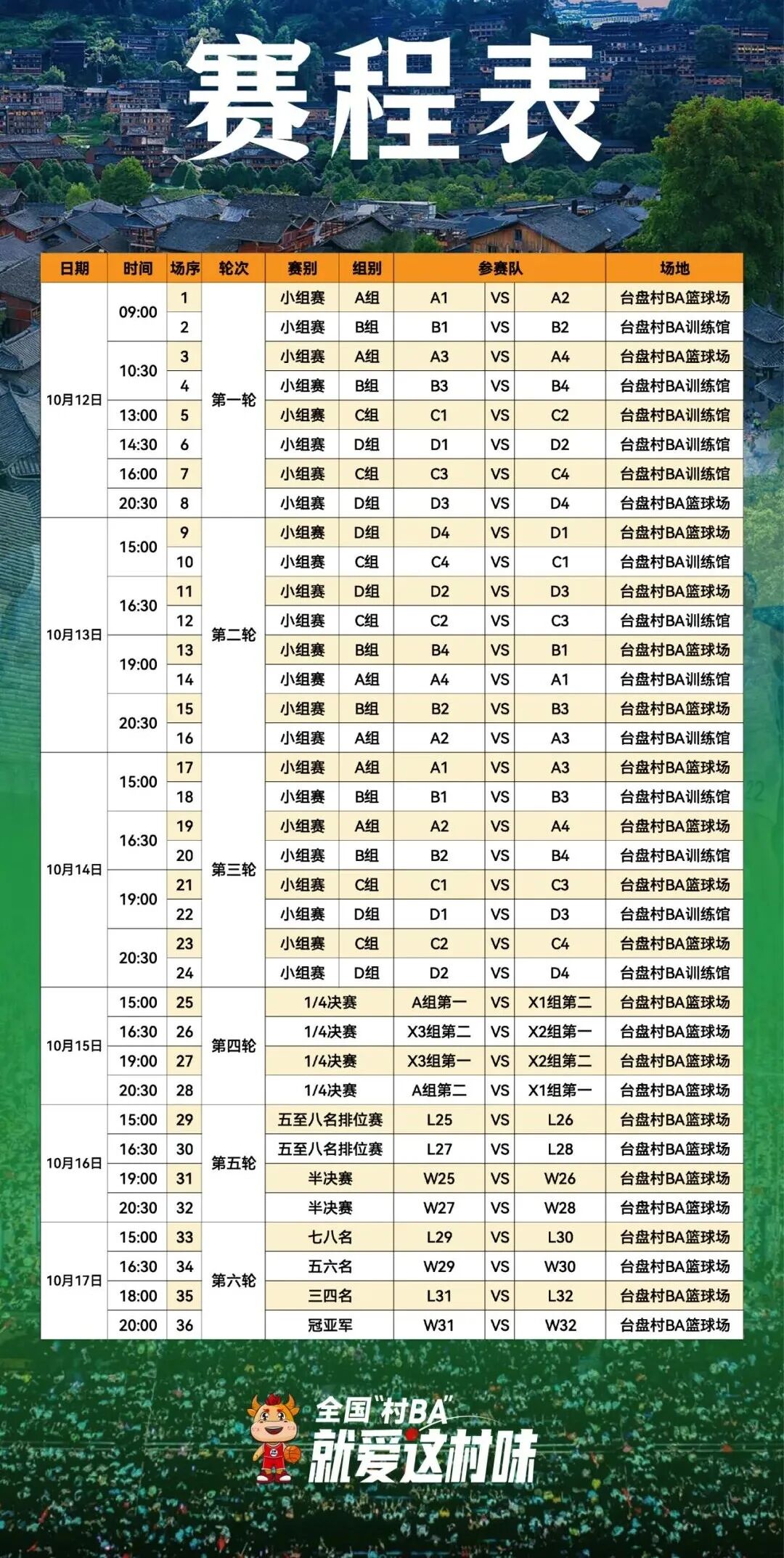 开赛倒计时3天【赛程安排】重磅公布16支球队,6天赛程,36场球赛乡亲们,速速收藏转发让我们一起为咱村的球队呐喊加油“乡”约贵州台江台盘村