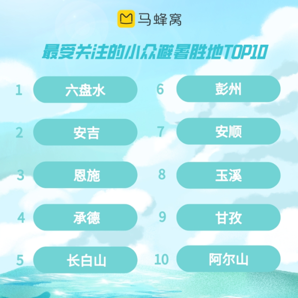 值得关注的是,有着“中国凉都”美誉的贵州六盘水以140%的热度涨幅登上今夏最受关注的小众避暑胜地榜首,同处贵州的安顺市也凭借宜人的气候和诱人的美景上榜。