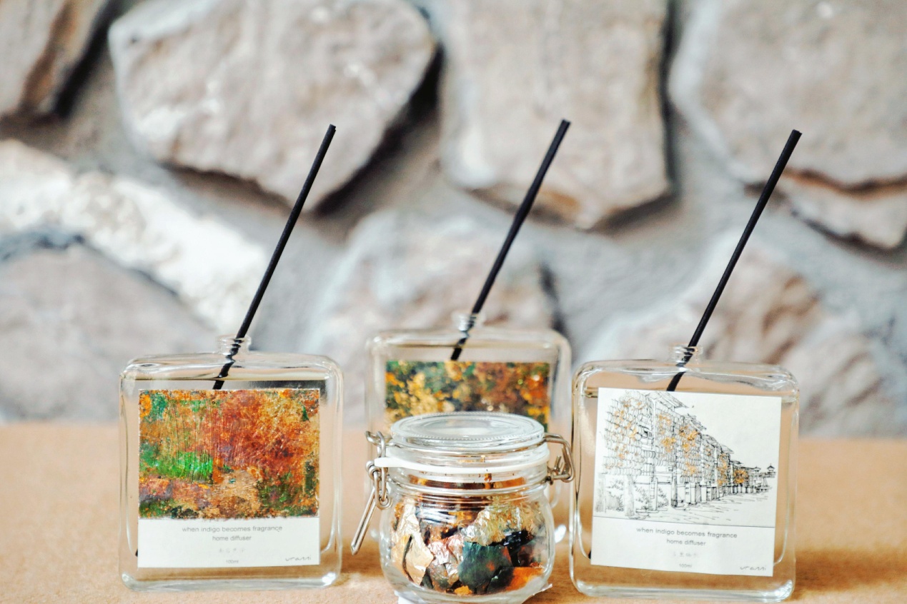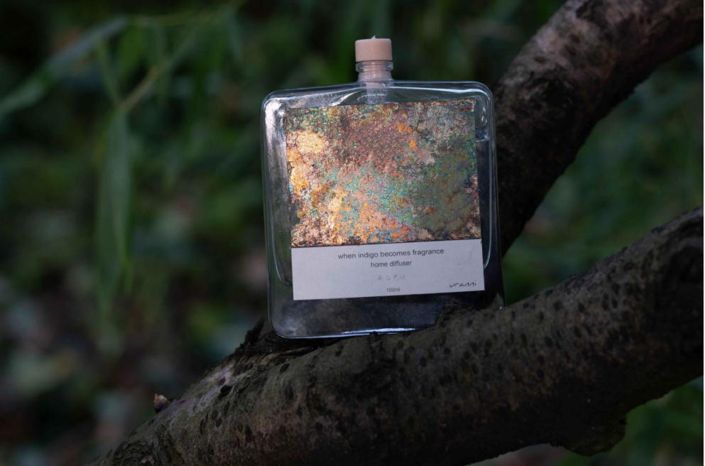 Uranni“无火香薰系列”分为“雨后岜沙”“占里晒秋”“篱下樱花煮清茶”,三款产品包装上的贴纸通过绣娘手工艺沾箔完成,结合黔东南地区使用板蓝根的生活习惯,以板蓝根的植物香作为基调提取精油,并融合其它的香味设计出适合不同消费场景的产品,传达及时行乐的生活态度。