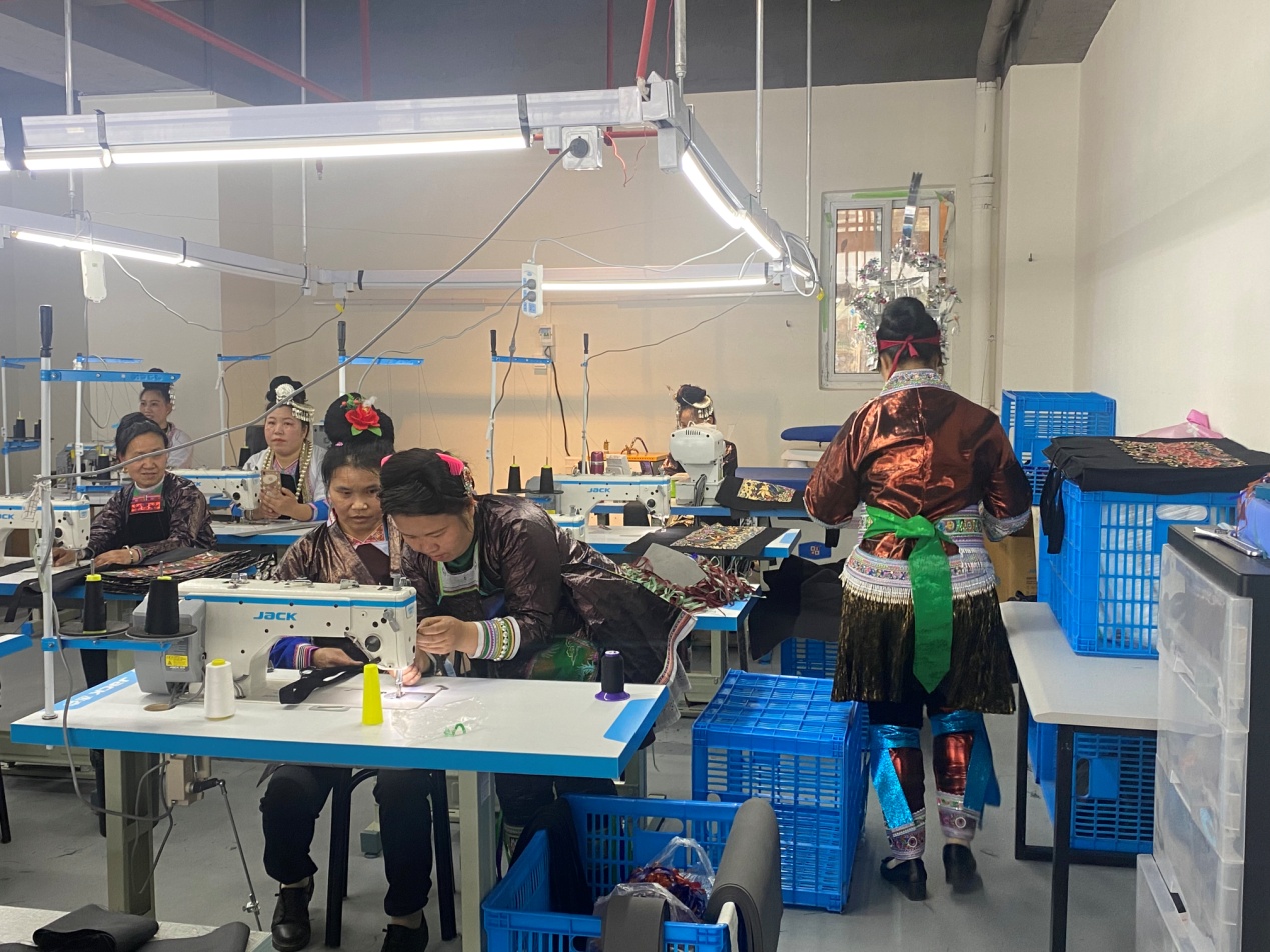 “我们秉持着所有的产品线都要有民族手工艺的元素,可能是某一个民族板块,某一个环节,把这些元素打破重组形成产品。所以我们结合妇女就业,在从江銮里成立了扶贫车间。黔东南妇女手工艺非常好,但市场化的背景下,她们不得不放下手艺外出务工。因此品牌初衷是把手工艺变成品牌的价值,让妇女靠手艺增加收入,带动传统文化的传承和发展,让指尖经济大放异彩。”顾羚黎说。