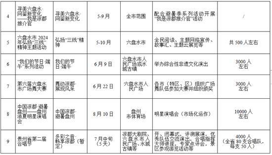 ——文旅融合方面。结合群众喜爱、市场需求,推出非遗文化秀、凉都夜pa、明星演唱会等一批游客参与性强、沉浸式体验的文化文艺活动,真正引爆热点、以节促游。部分景区将围绕音乐节、电竞节等主题,推出文艺展演、露营大会等活动。