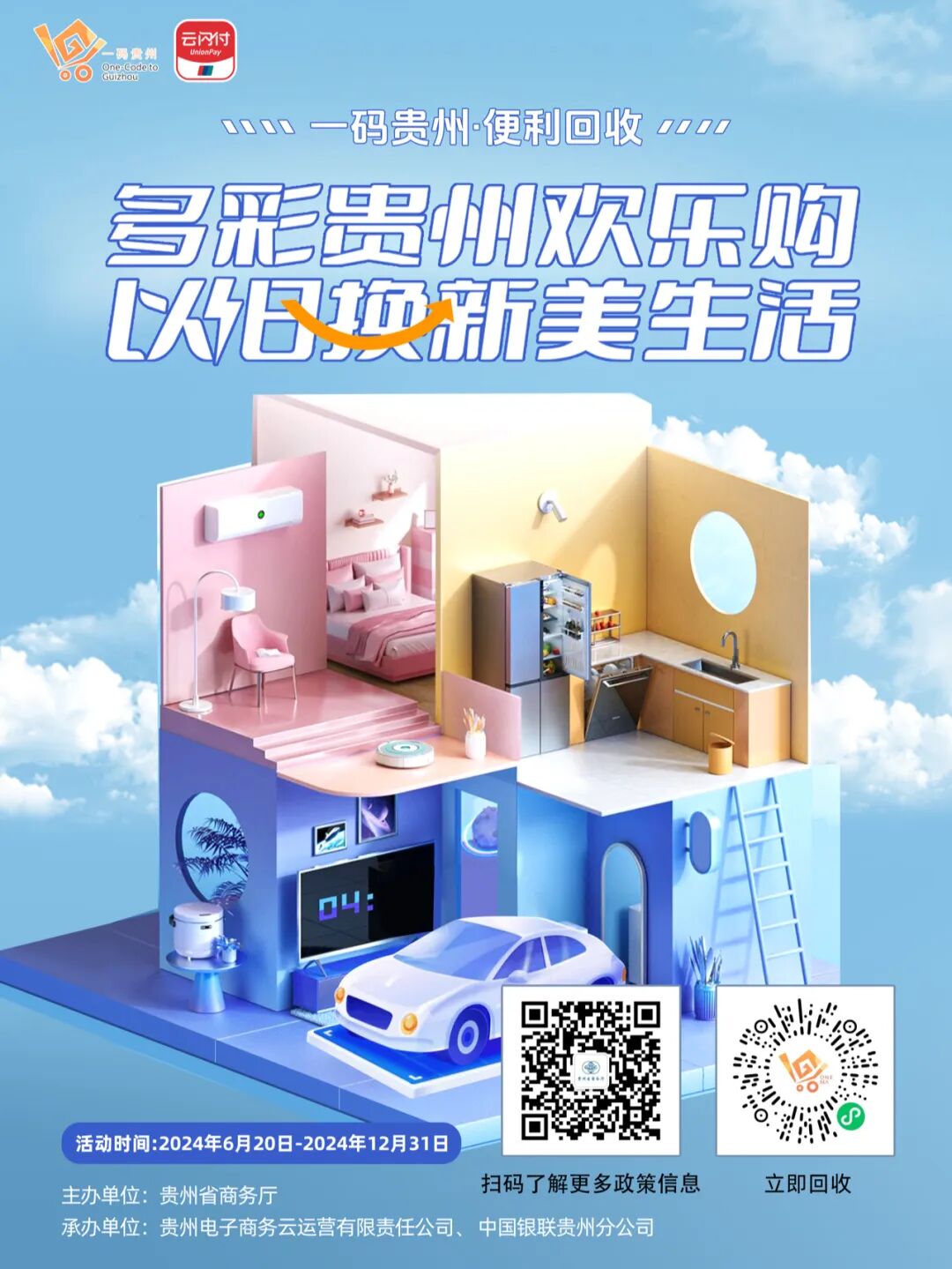 据介绍,贵州将持续开展全省汽车以旧换新、家电以旧换新、二手车交易促销、家装厨卫“焕新”等消费品以旧换新促销活动。对于消费者报废老旧汽车购买符合要求新车的,最高可享10000元优惠;对于消费者旧家电置换新家电的,最高可享500元优惠;对于消费者家装厨卫“焕新”消费的,最高可享200元优惠;对于消费者购买二手车的,最高可获得3000元购物消费券,用于二次购物消费。省商务厅还将会同省内金融机构、平台企业、流通企业,整合促销资源,形成优惠矩阵,最大限度惠及消费者。相关活动情况,消费者可关注“一码贵州·便利回收”二维码了解参与。