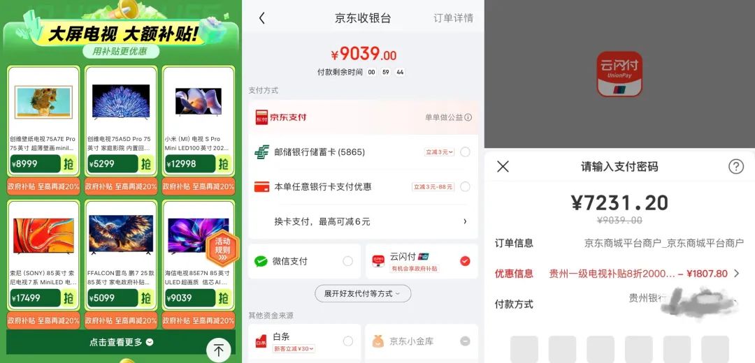 第四步:回到贵州活动专区,选购领券对应类别的商品,支付时选择云闪付支付即可享受立减优惠。