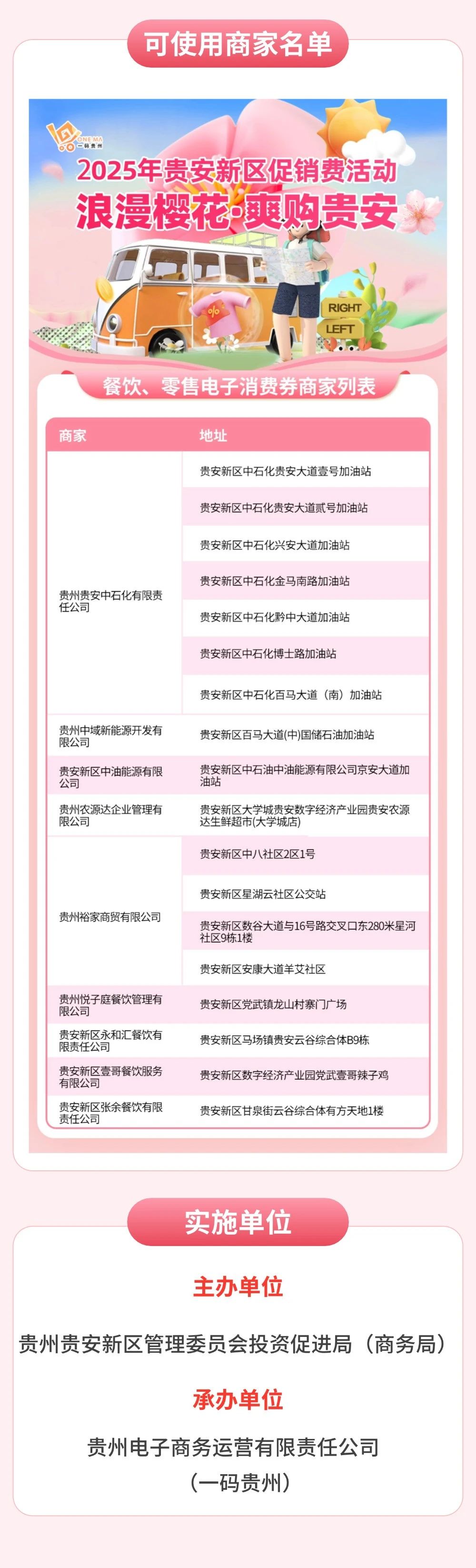 近日,记者从贵安新区投资促进局(商务局)获悉,主题为“浪漫樱花·爽购贵安”的2025年贵安新区促销费活动即将上线。
