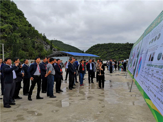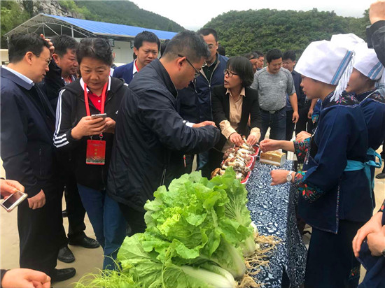 观摩组在惠水县好花红镇佛手瓜扶贫产业园听取相关介绍。