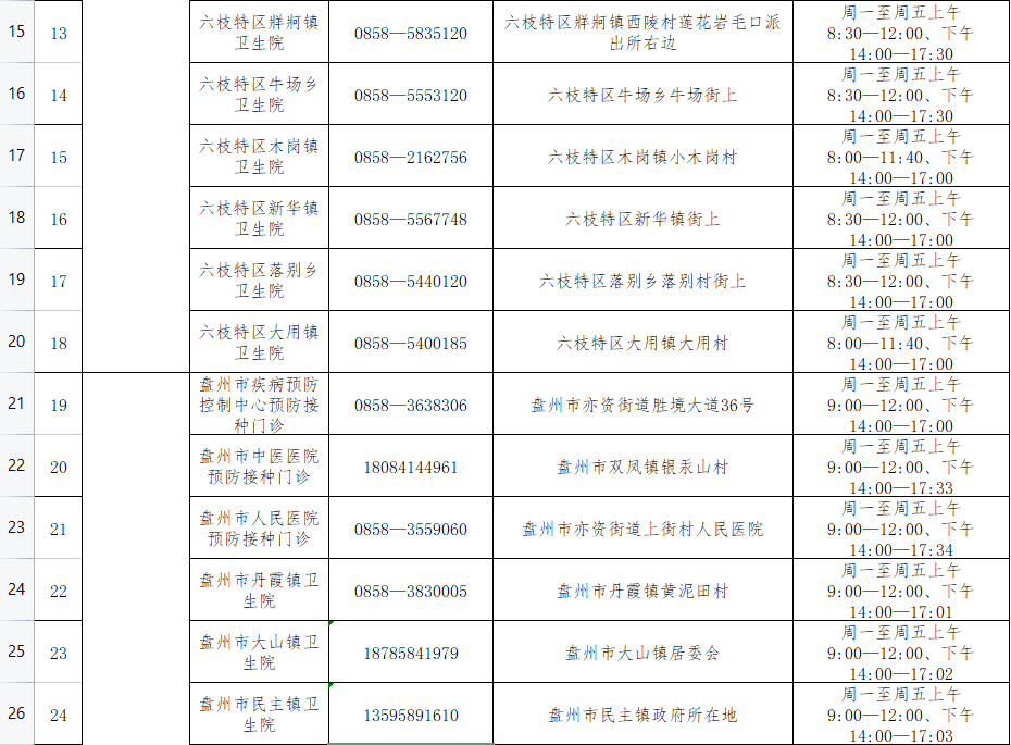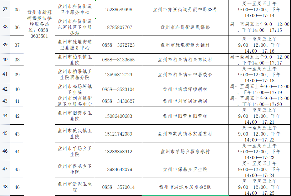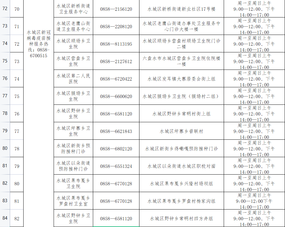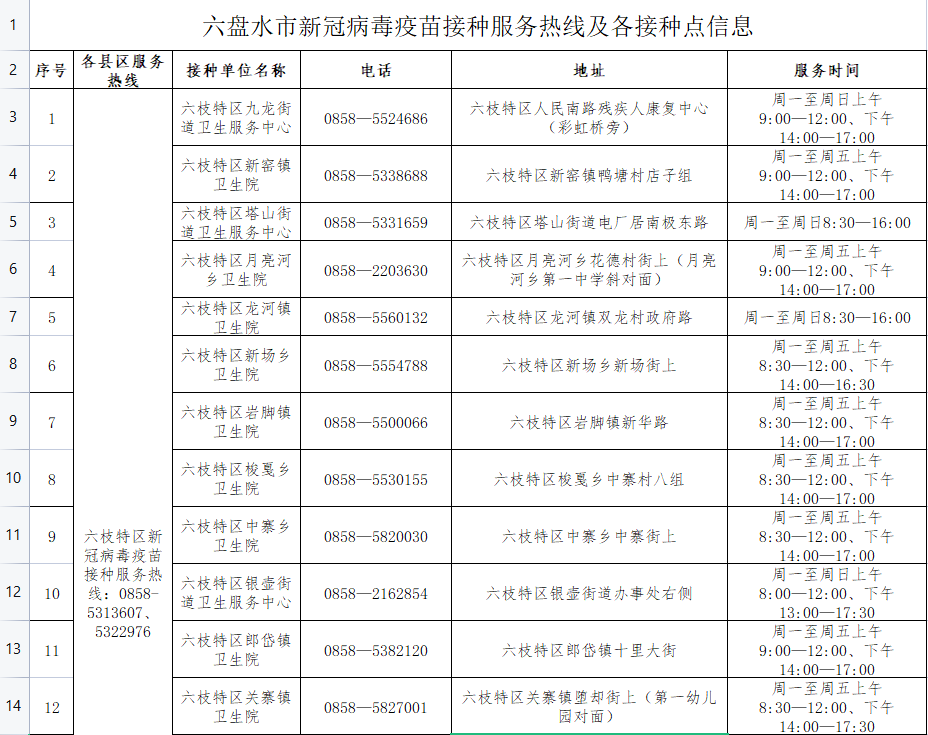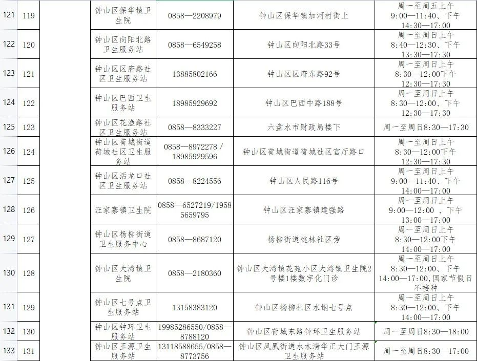 速看丨六盘水市新冠病毒疫苗接种服务热线及各接种点信息