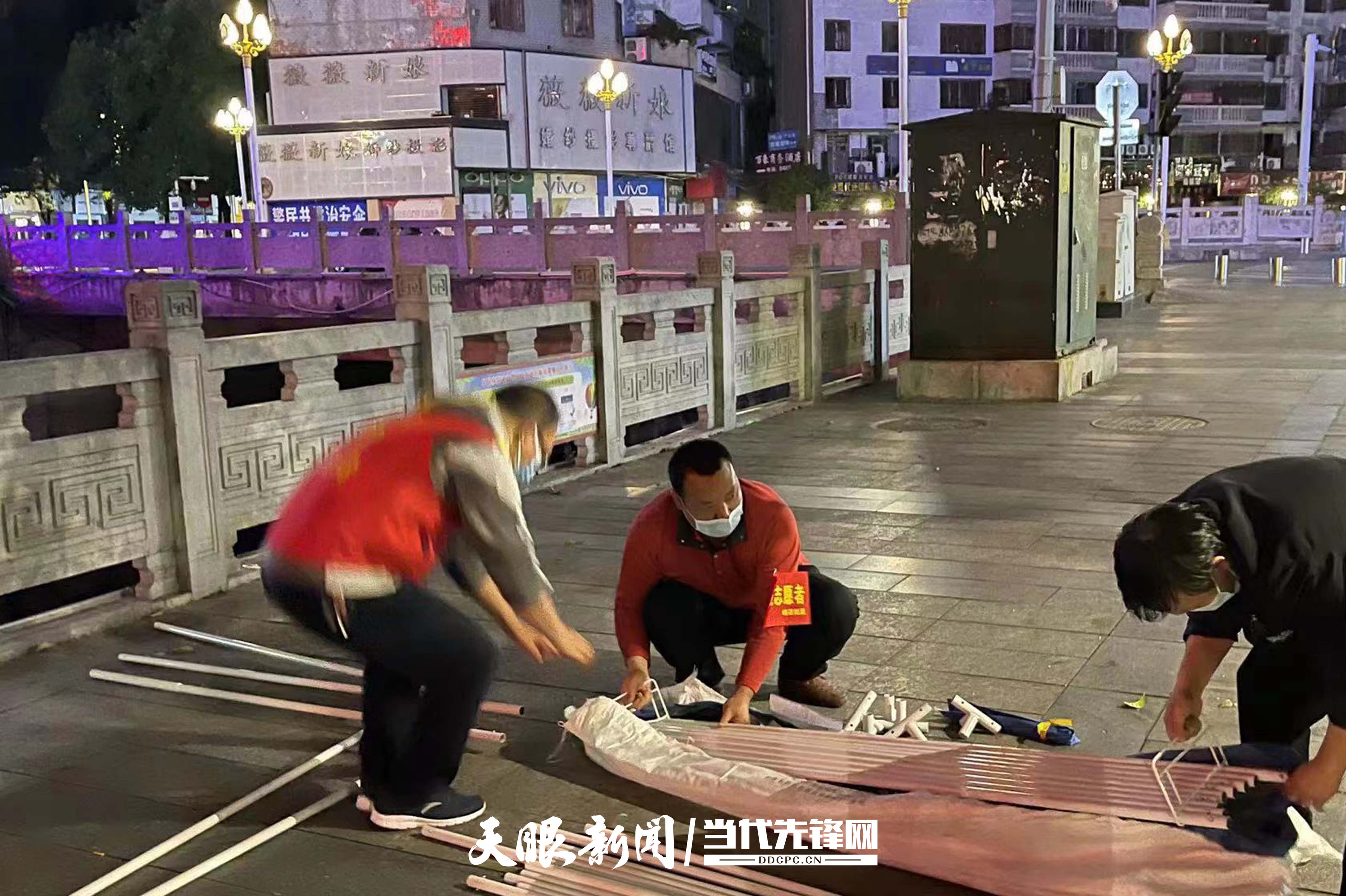 凌晨搭建核酸检测点帐篷