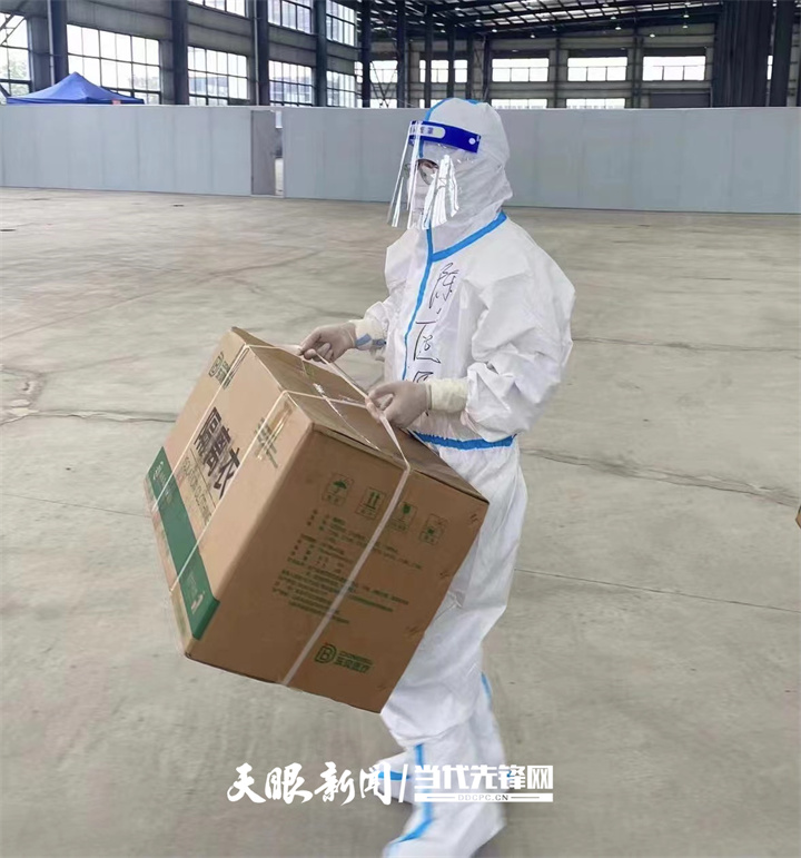 实验室刚建成时,人手较为紧缺,陈庭源就带头负责防疫物资的装卸工作,无论多晚,都会把实验室和同事们需要的医用物品、生活用品、办公用品搬运回来,仅此期间,就为气膜实验室提供防疫物资22个品类共计17140件,工作物资11个品类共计1512件。