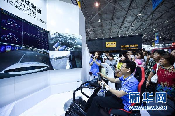 参展商在2018中国国际大数据产业博览会上向参观者介绍5G远程自动驾驶(5月26日摄)。陶亮 摄